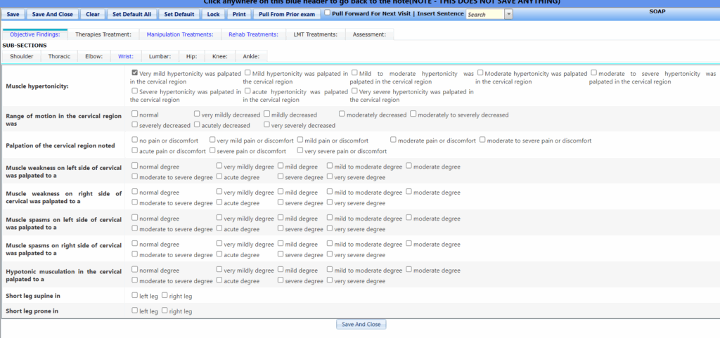 AI Notemaker with Customizable Chiropractic Templates Speech or type clinical information. Generate notes automatically. Add exam, adjustments and treatments quickly. Make changes from prior visits without having to re-enter all the information.
